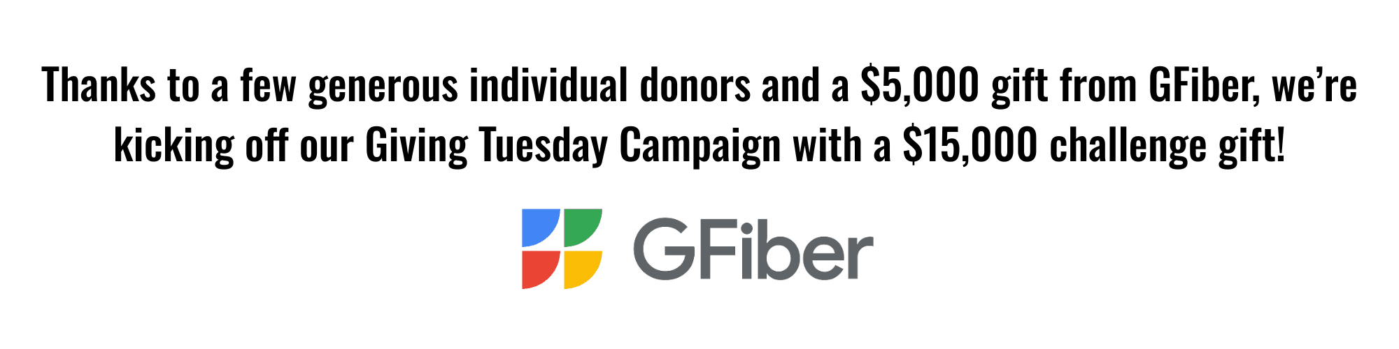 Thanks to a few generous individual donors and a $5,000 gift from GFiber, we’re kicking off our Giving Tuesday Campaign with a $15,000 challenge gift!