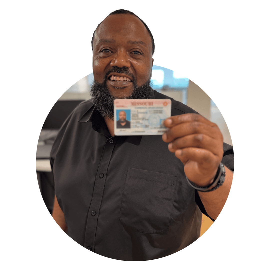 With his newly issued Missouri ID, Stacie - one of our beloved REVEAL clients - has many new opportunities to get back on his feet. In partnership with RS, Stacie now has access to affordable housing, food stamps, government benefits, and employment opportunities, all of which would not be attainable without identification. One ID can change a person's life!